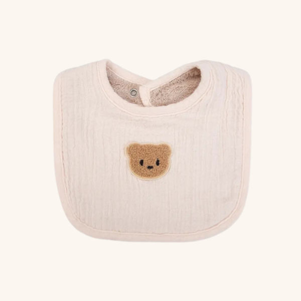 Een slab is een echte must-have voor iedere ouder. Tijdens het eten, drinken of kwijlen biedt ons beer slabbetje mét teddy de perfecte bescherming voor babykleertjes.